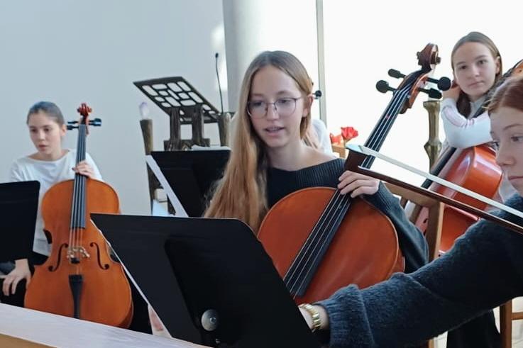 Das Celloensemble hat für die Schwestern der Congregatio Jesu, in der Josephskapelle des Krankenhauses des Dritten Ordens, Renaissance – und Barockmusik gespielt, solistisch, in kleinen Gruppen und zusammen. Die Kapelle hat eine wunderbare Akustik, die Stimmung war fröhlich und adventlich. Nachdem wir das Konzert mit drei Weihnachtsliedern beendet hatten, gab’s für das Celloensemble noch Punsch und Plätzchen.