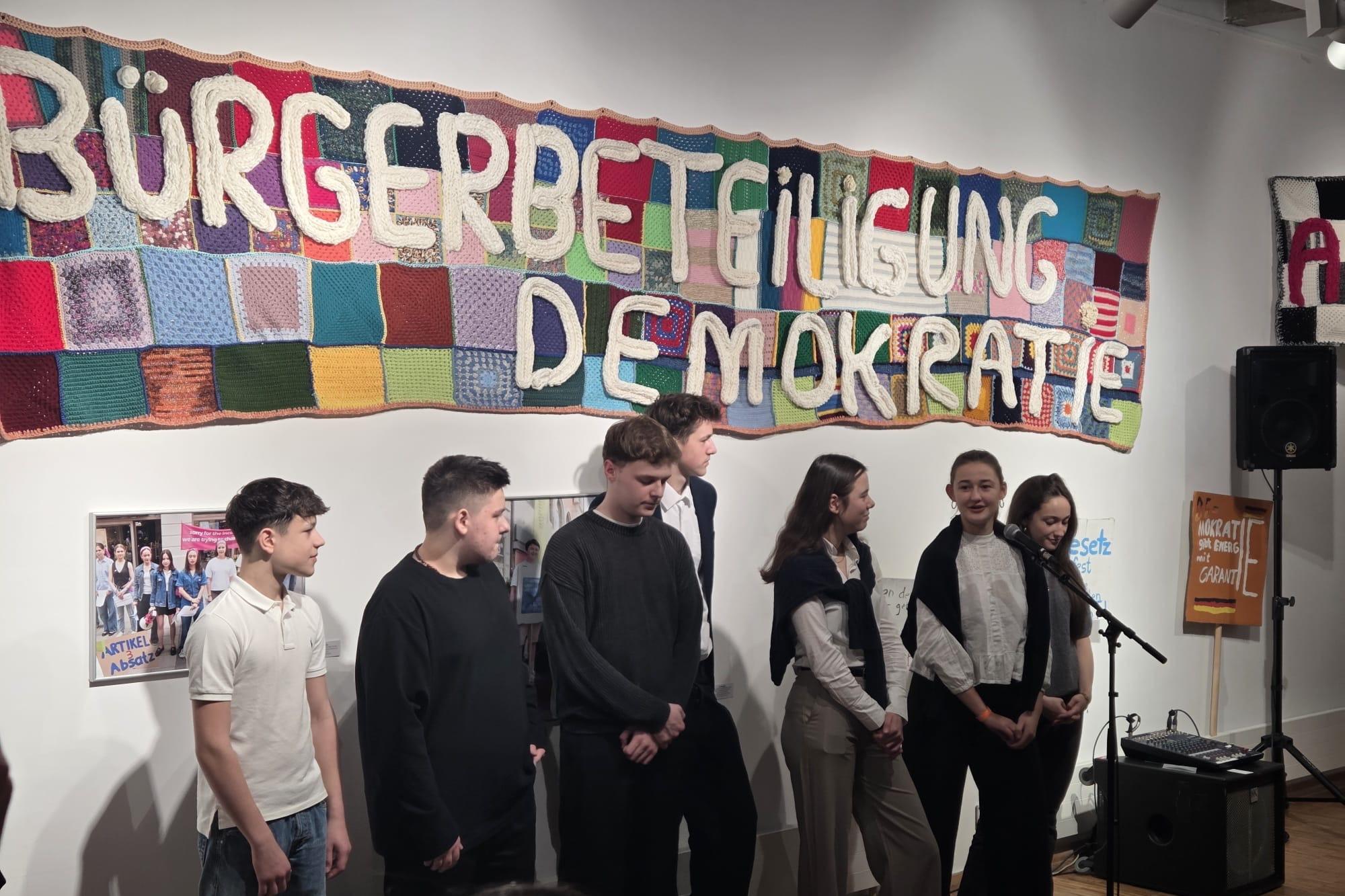 In der vergangenen Woche durften die drei Leitungen der AG Schule ohne Rassismus, Isabella Meerpohl, Gioia Pierantognetti und Paula Wendt, an der Eröffnung der Ausstellung „Walk of democracy – 75 Jahre Grundgesetz“ am Goethe-Institut in Paris teilnehmen. Im Vorfeld des viertägigen Besuchs, der vom Programm Erasmus + gefördert wurde, besuchten die Mädchen eine französische Schule und konnten sich mit den Schülerinnen und Schülern vor Ort über politische und gesellschaftliche Themen austauschen und beispielsweise auch mit einem Streetworker sprechen, der sich mit seinem Verein für Opfer von Rassismus und Diskriminierung einsetzt. Insgesamt nahmen 16 Schülerinnen und Schüler, die auch den Walk of democracy vor zwei Jahren in der Münchner Innenstadt mitgestaltet haben, an der Fahrt teil.